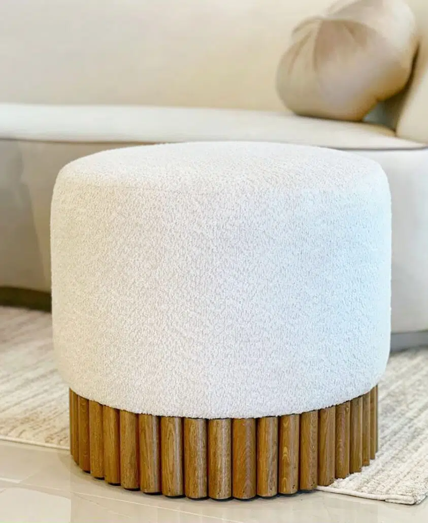 הדום MAISON בד בוקלה שמנת, רגל עץ.