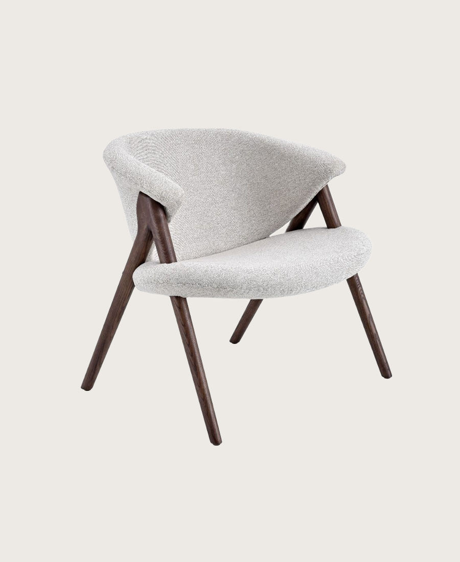 כורסאת שאקירה עשויה בד בגוון אבן. רגליים עשויות עץ אגוז.