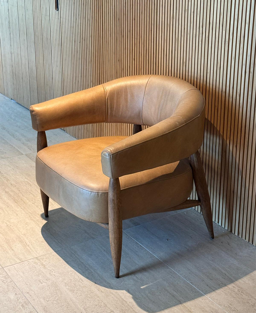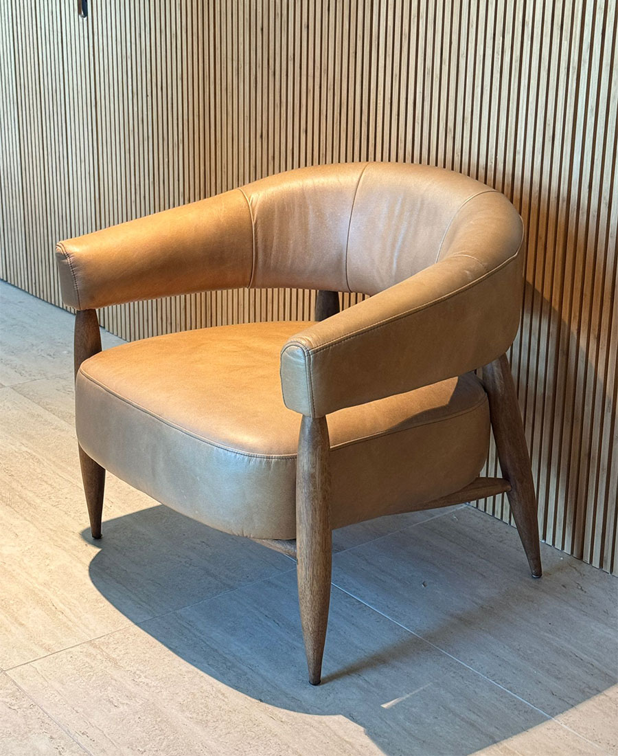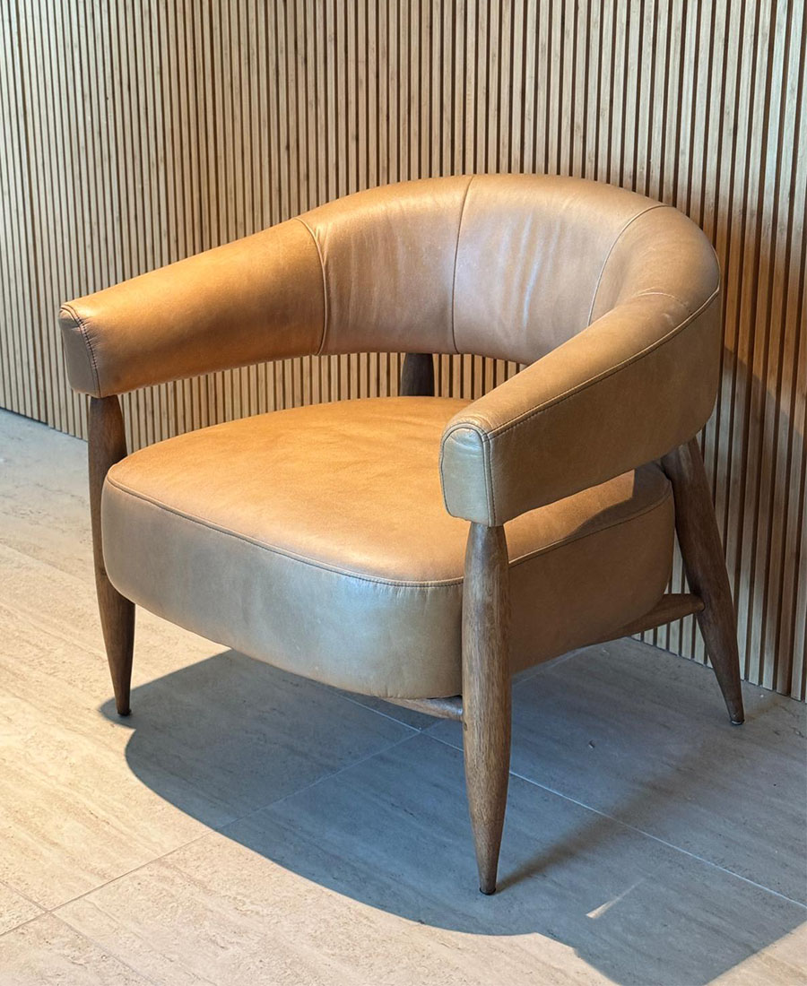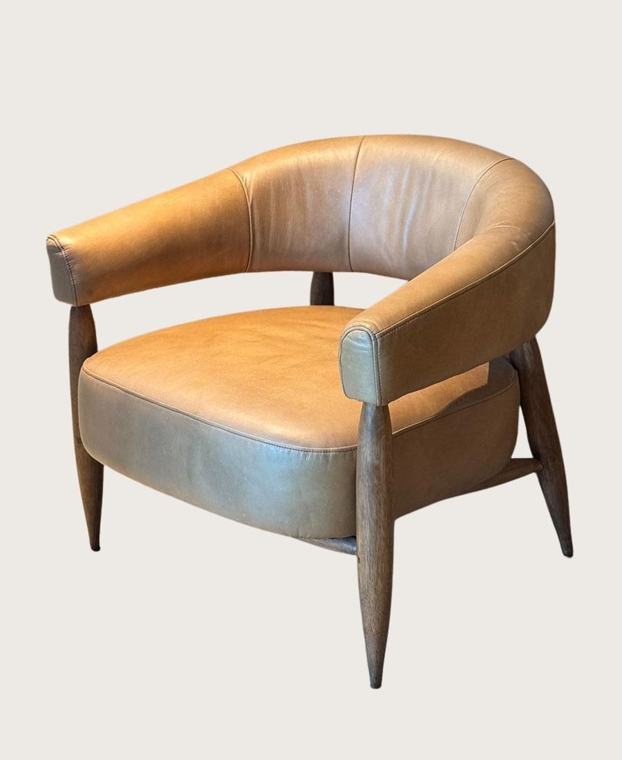 כורסא עור טימוטי איכותית ונעימה עשויה דמוי עור בגוון נאט טיר קאמל. רגליים עשויות עץ טבעי.