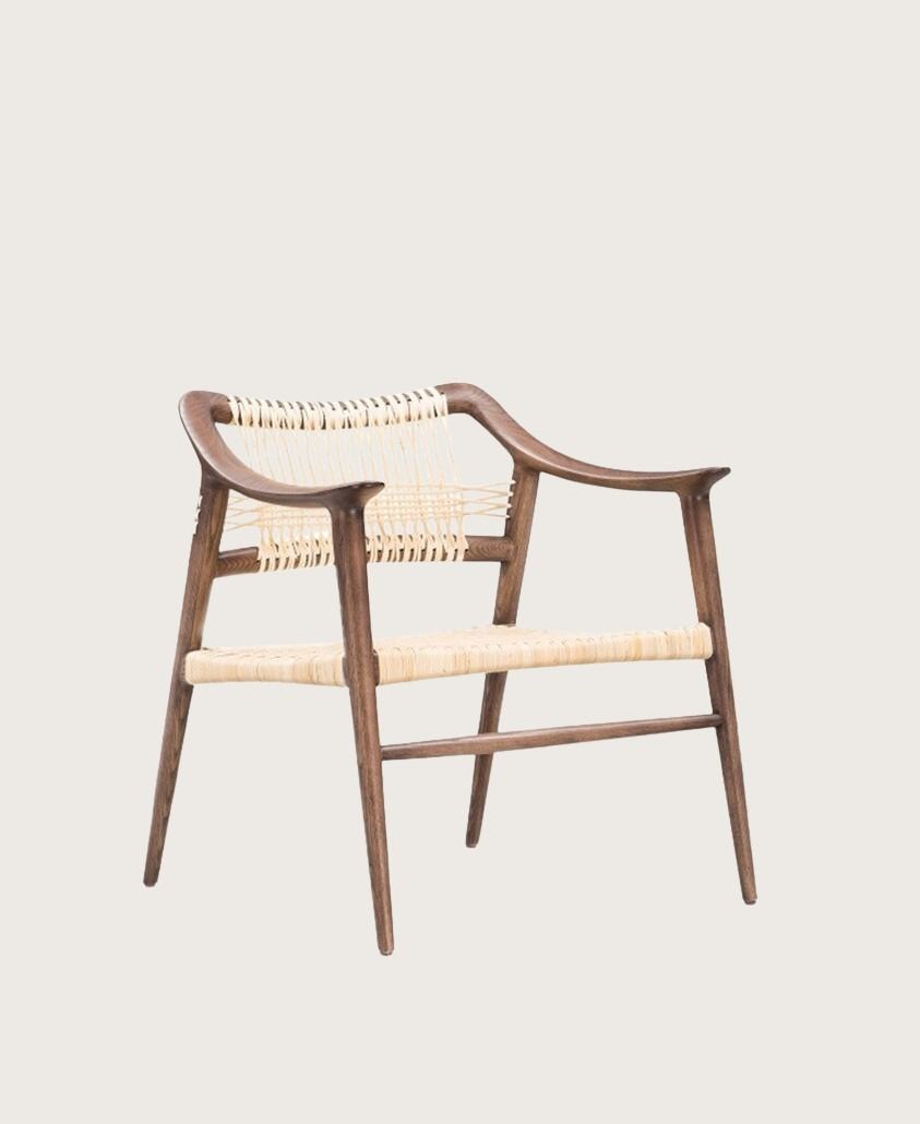 כורסא ראטן דורותי עשוי בגוון אגוז. מושב וגב עשויים ראטן בגוון טבעי.