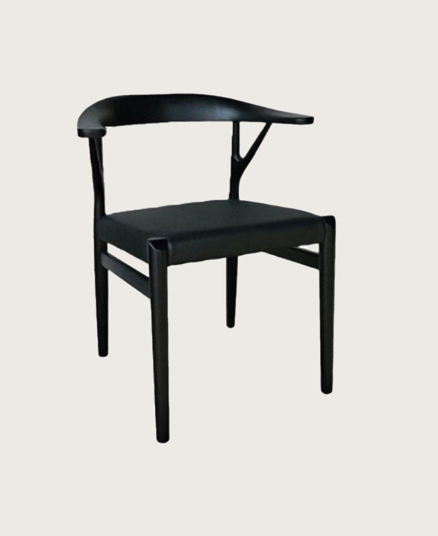 כסא פינת אוכל סגטי עשוי עץ שחור עם מושב דמוי עור בצבע שחור.