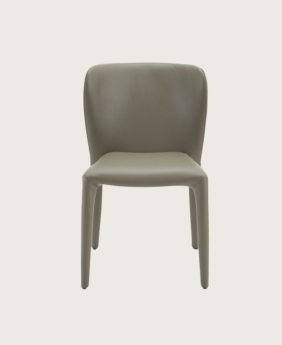 כסא אוכל דגם שרון עשוי דמוי עור בגוון אבן כהה.