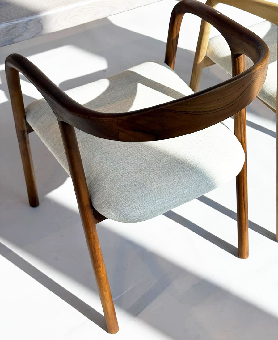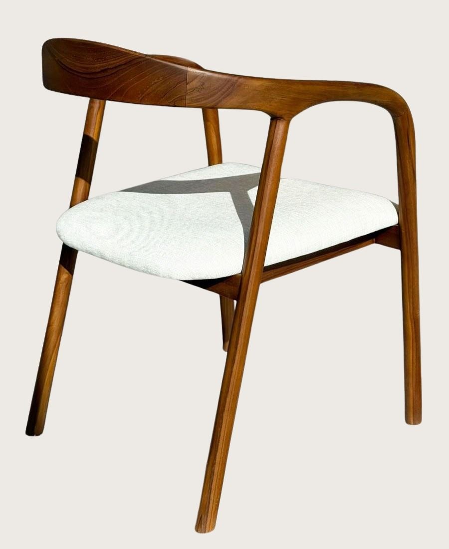כסא אוכל דגם REEF רגליי עץ טיק אינדונזי בגוון אגוז + מושב פשתן.