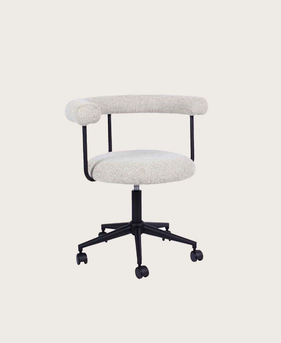 כסא משרד דגם דייזי עשוי בד ארוג בגוון בז’ עם רגל שחורה על גלגלים.