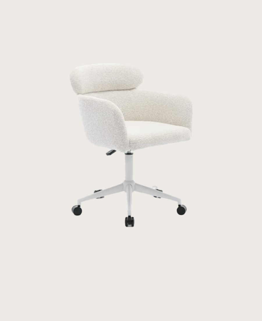 כסא משרד דגם סלינה עשוי בד ארוג בגוון אבן עם רגליים תואמות בגוון למושב.