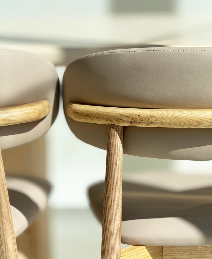 כסא פינת אוכל דגם סרינה עשוי דמוי עור בגוון אבן, עם משענת המותאמת במיוחד למושב היוצרת נוחות מקסימאלית.