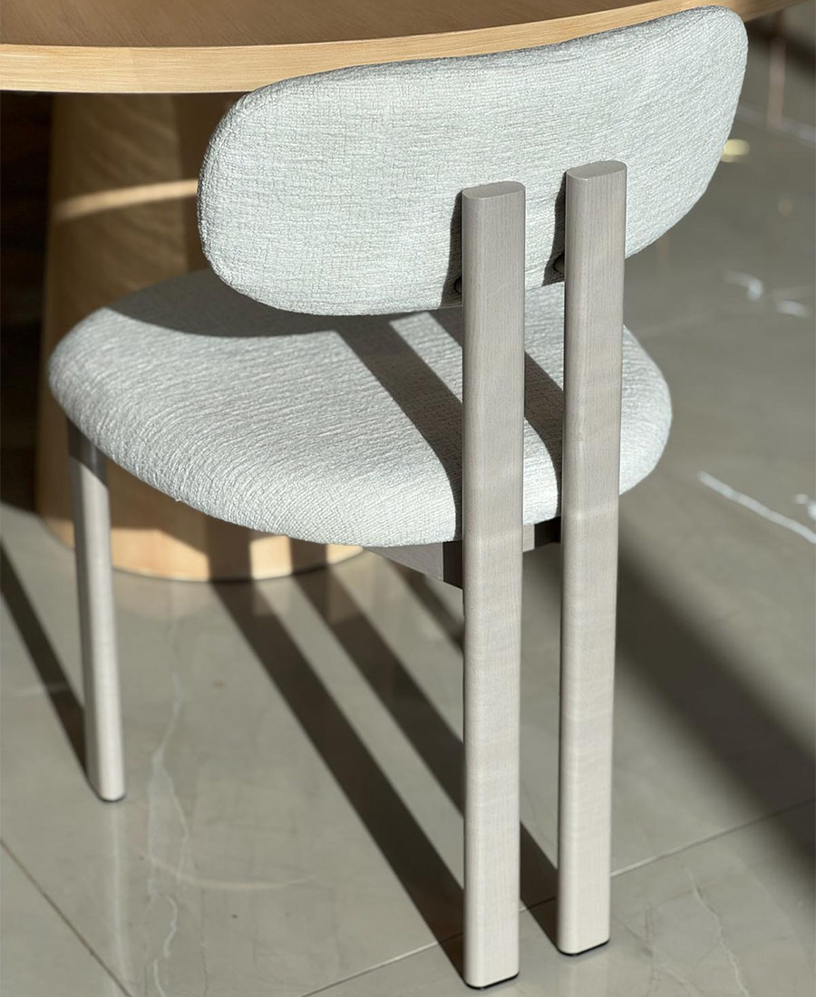 כסא פינת אוכל דגם GISSELE עשוי בד ארוג בגוון אבן, רגל עשויה מתכת בגוון אבן. מתאים לכל חלל בבית.
