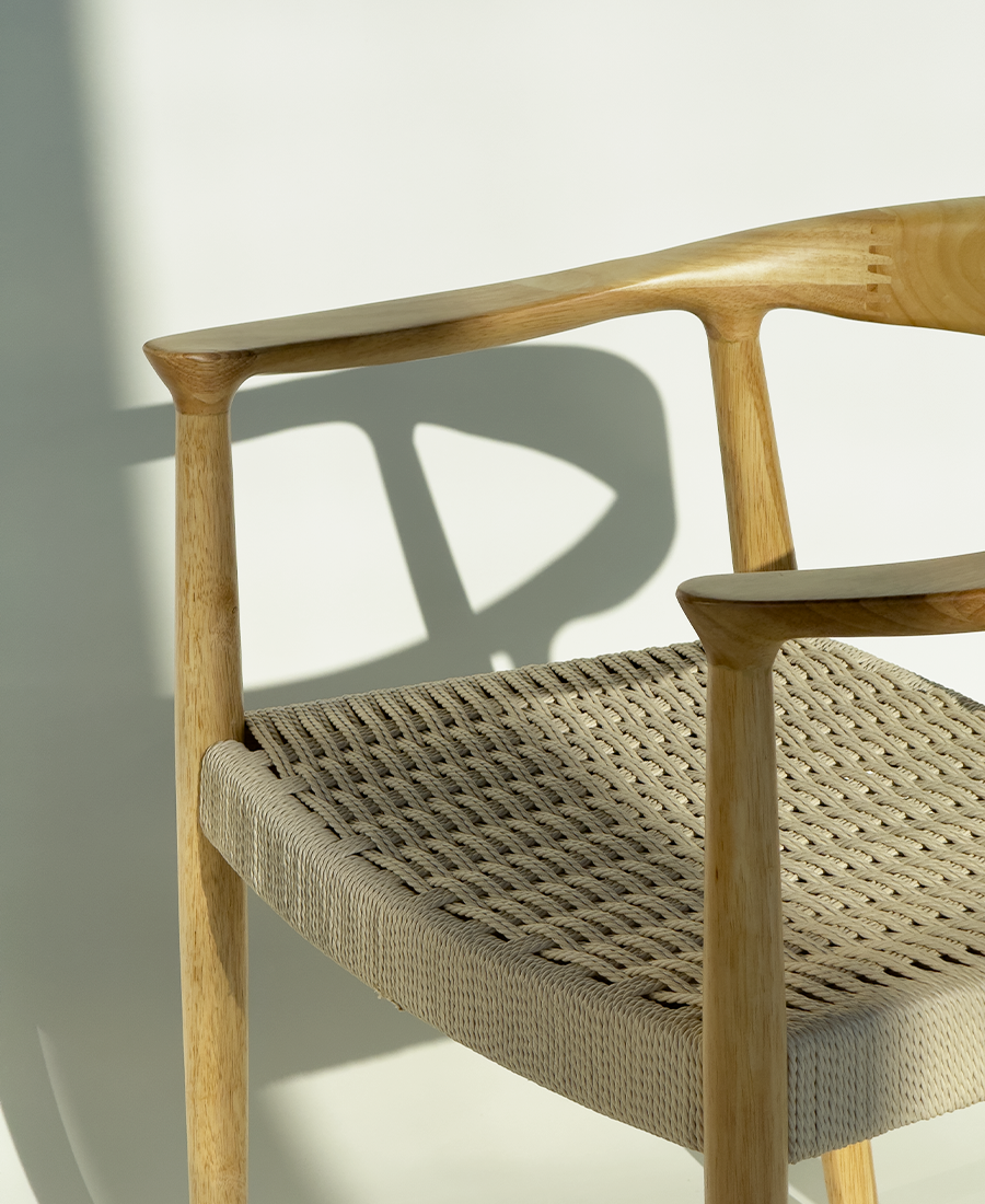 עם גב מעוגל ונקי, בשילוב מושב קלוע בעבודת יד מראטן טבעי בגוון בז’.