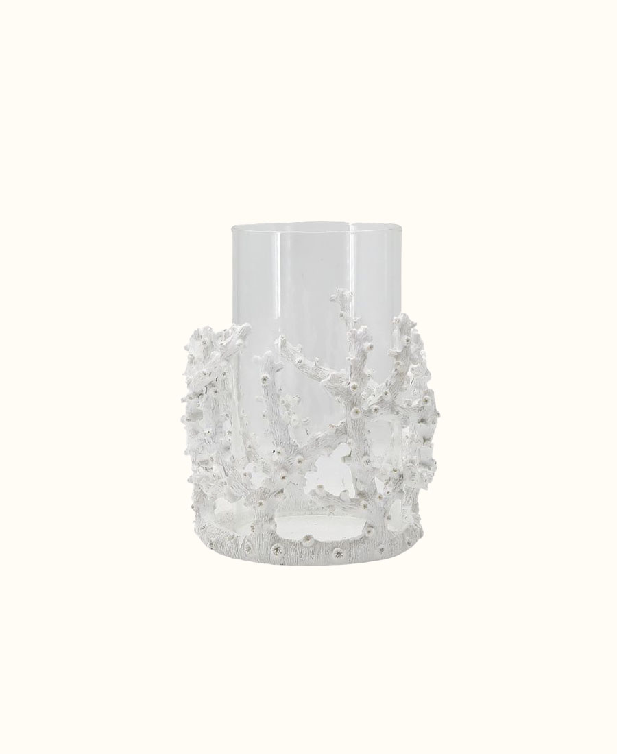 עששית קורל עם זכוכית פנימית.