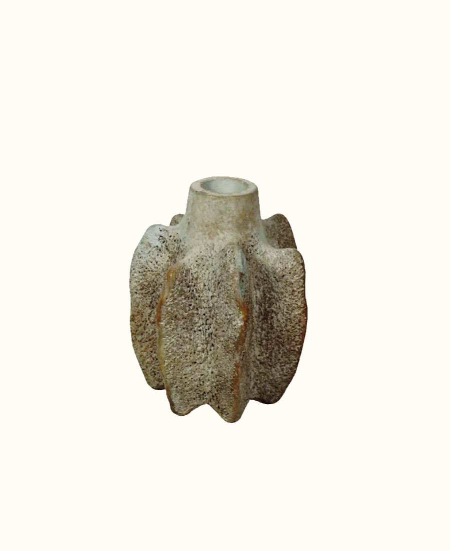 פמוט עשוי בטון ליבס לייט בצורה אובלית בגוון אפור בהיר.