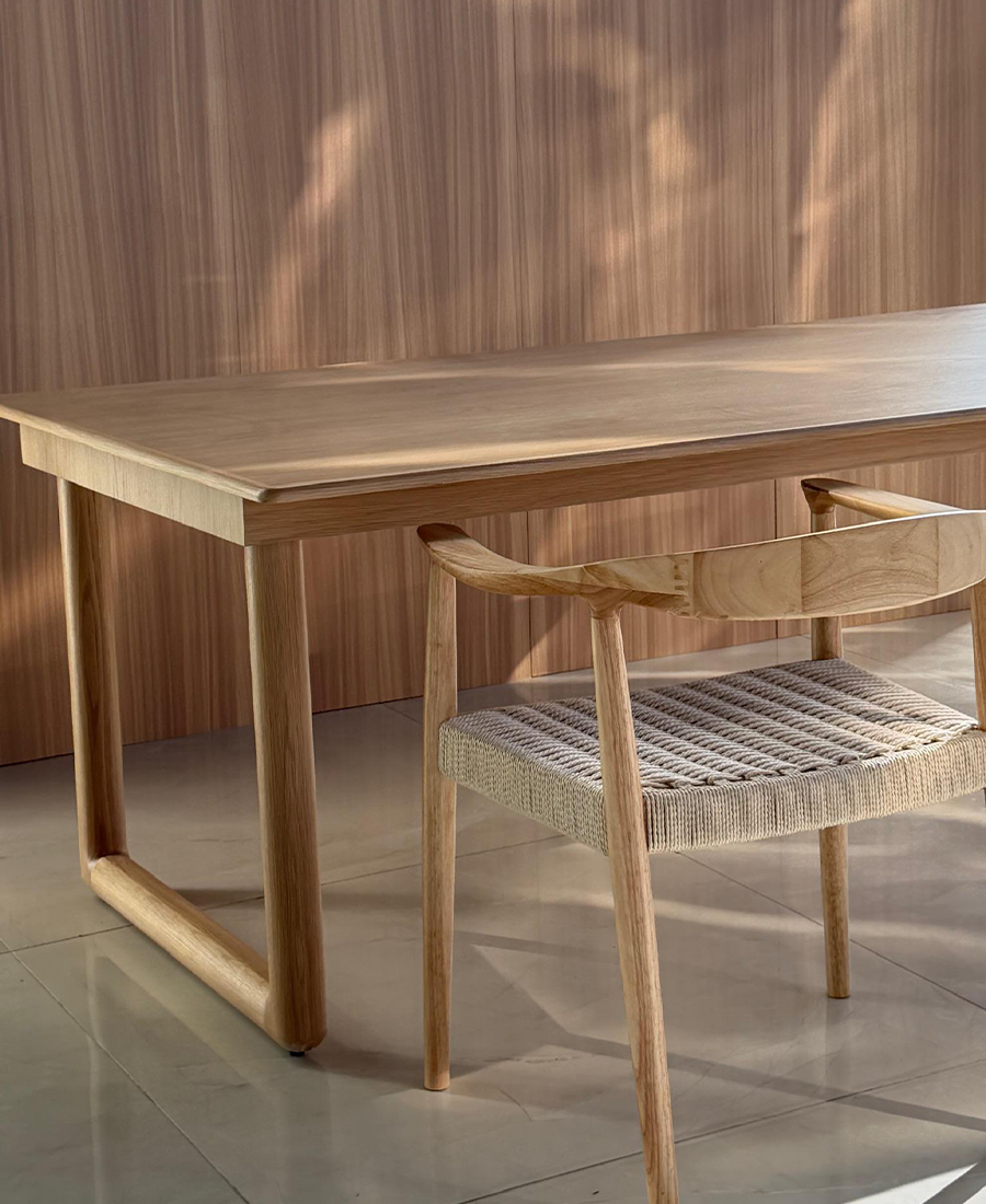 שולחן אוכל LENI עשוי רגלי עץ מלא, פלטת פורניר