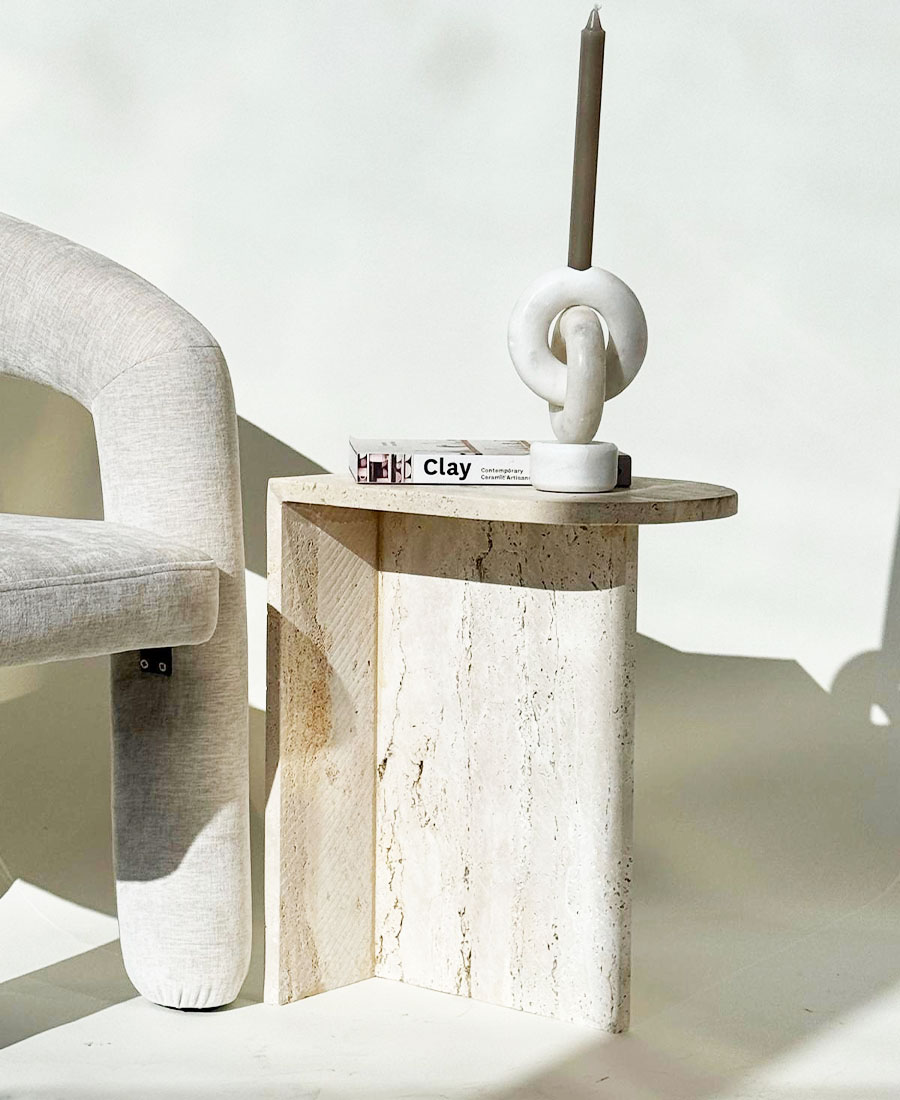 שולחן צד / נשכן עשוי טרוונטין אמיתי בגוון טבעי.