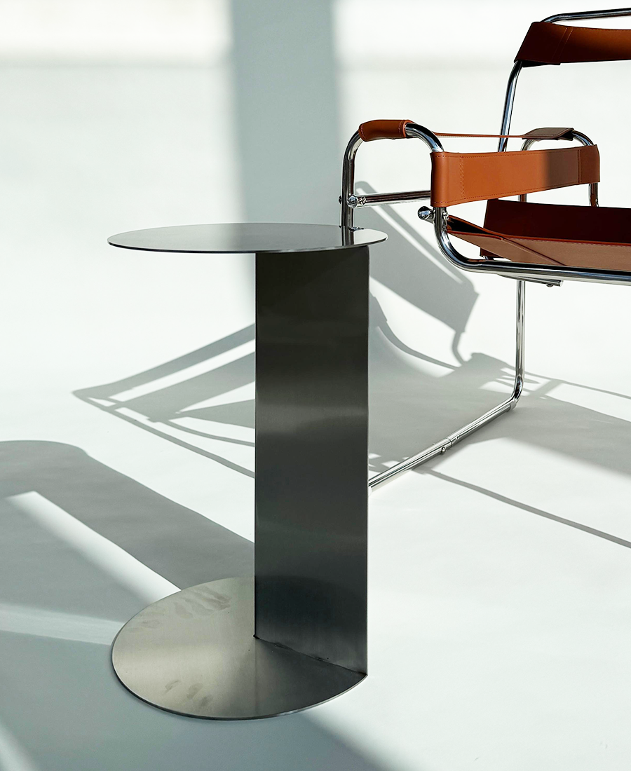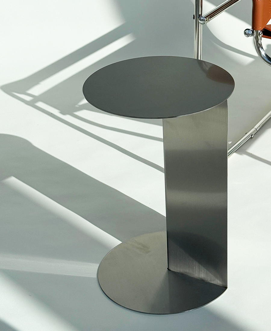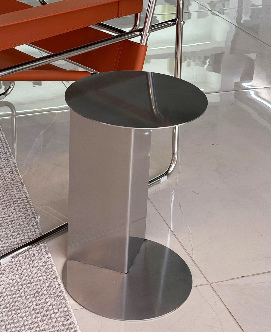 שולחן צד בעיצוב מודרני ועדין, עשוי נירוסטה, מבנה עגול