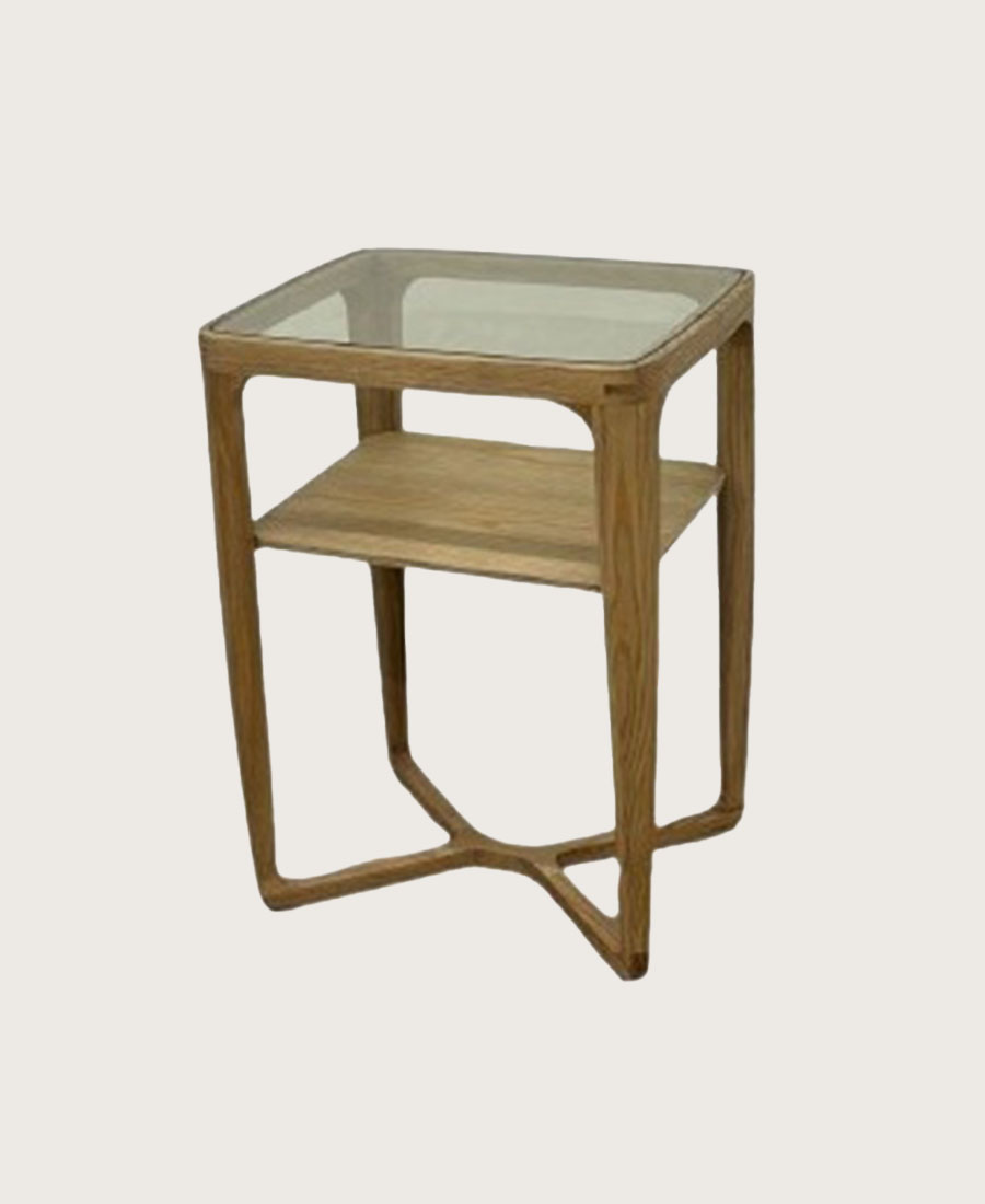 שידת צד הוואנה אלון עם שילוב של עץ וזכוכית עשוי בגוון אלון בצורה מובעת.