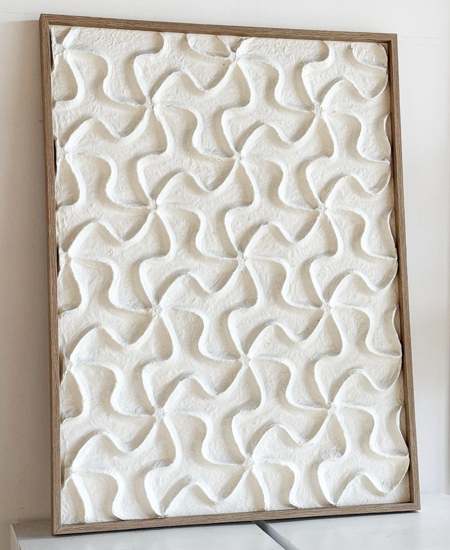 תמונת לינה מעוטרת בתבליטים בגוון שמנת, מעניק לה מראה עמוק ומשובח. 60X80 ס”מ .