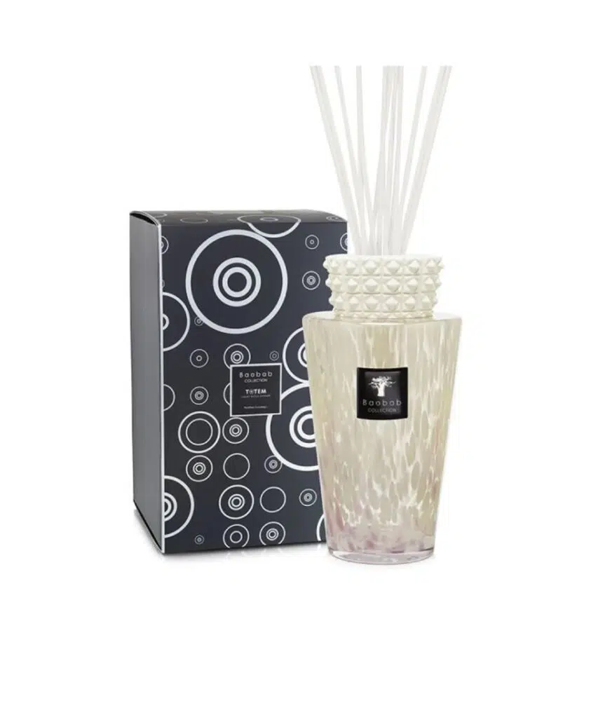WHITE PEARLS TOTEM מגיע בזכוכית של מפיץ ריח הפנינים הלבנים מכילה פרטים בצבעי לבן ורוד. המיומנות של אומני הזכוכית שלנו פירושה שכל בקבוק הוא יחיד במינו. כובע הקרמיקה של הזכוכית לבן-מט וניתן להניחו בעדינות על הבקבוק כקישוט המעניק לו נוכחות מעודנת.