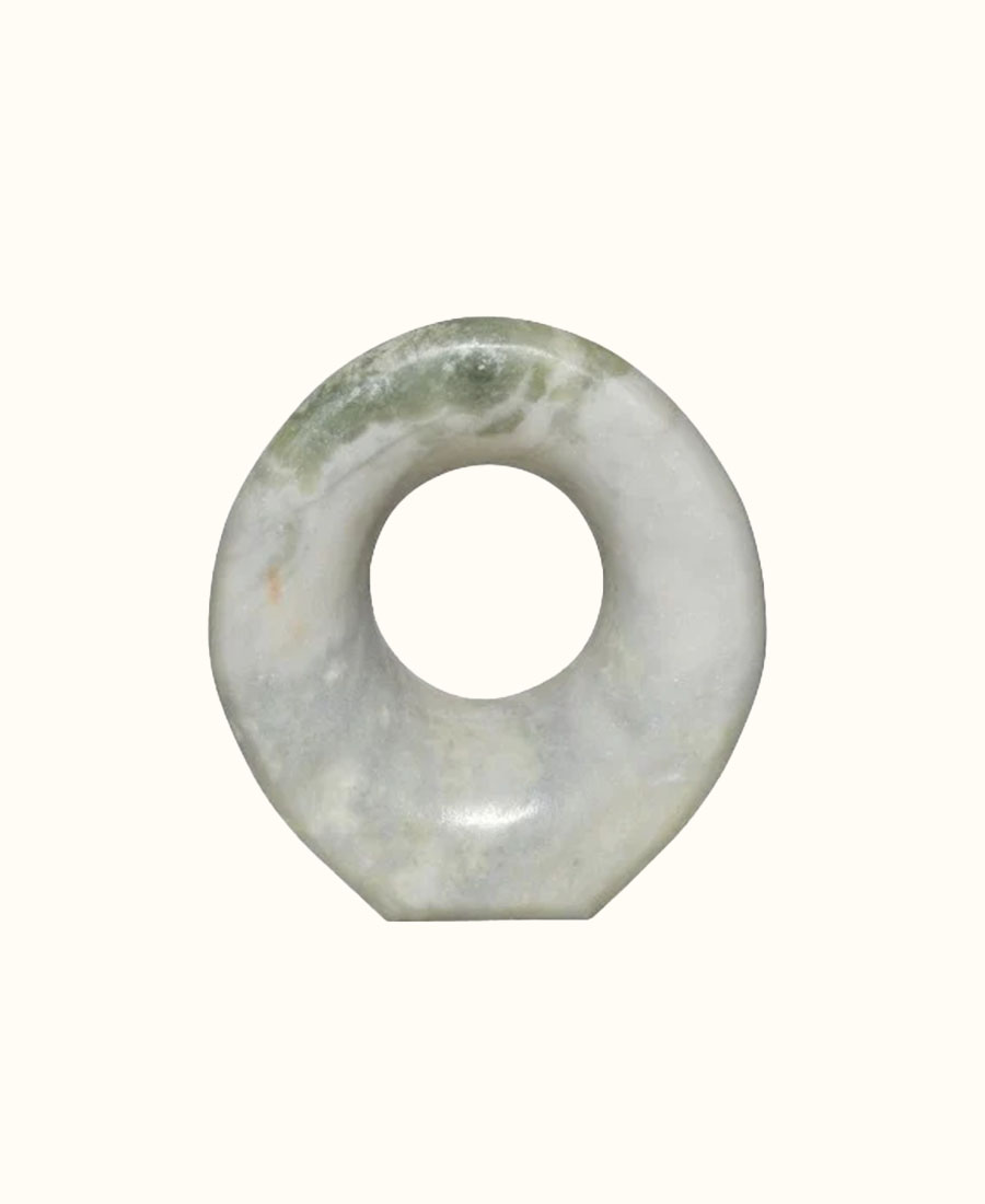 פריט דקורטיבי עשוי בצורה עגולה מחוררת בגימור חלק.