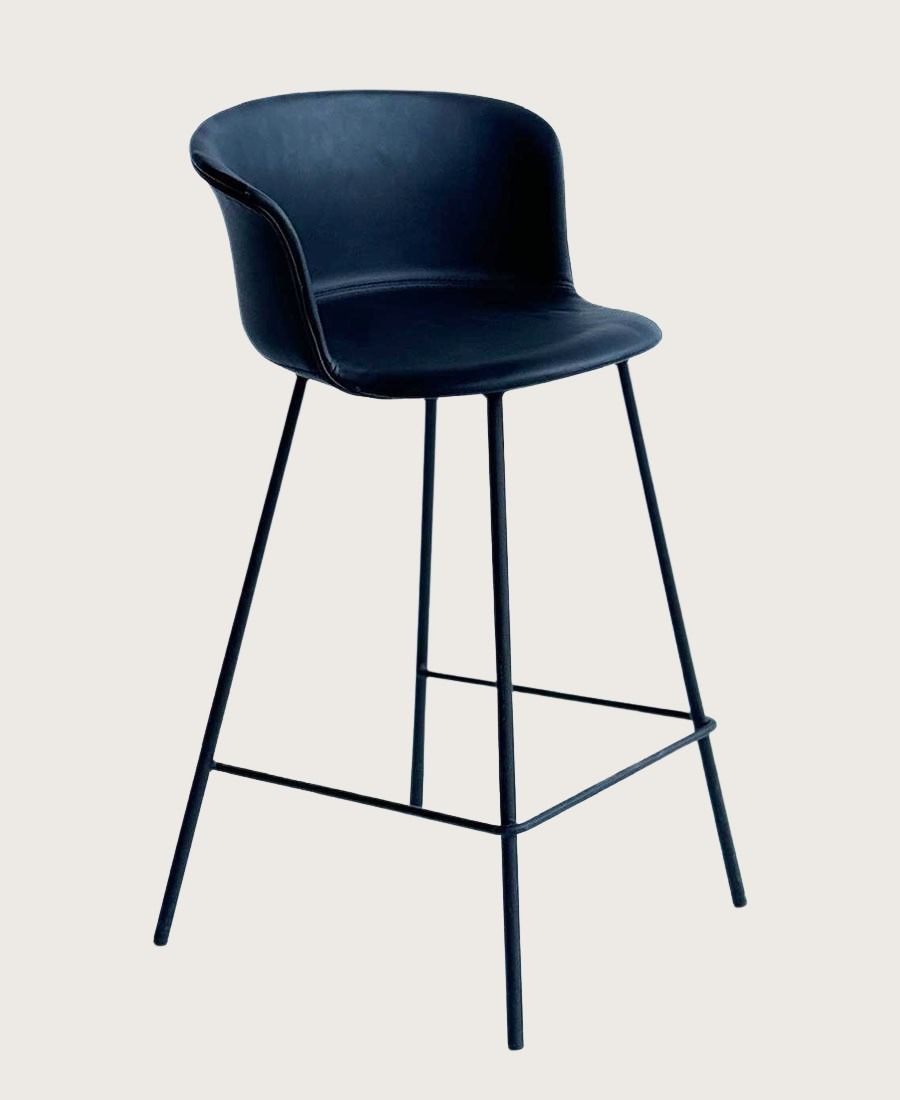 כסא בר מדגם MIKE דמוי עור בצבע שחור, עם משענת המותאמת במיוחד למושב היוצרת נוחות מקסימאלית,