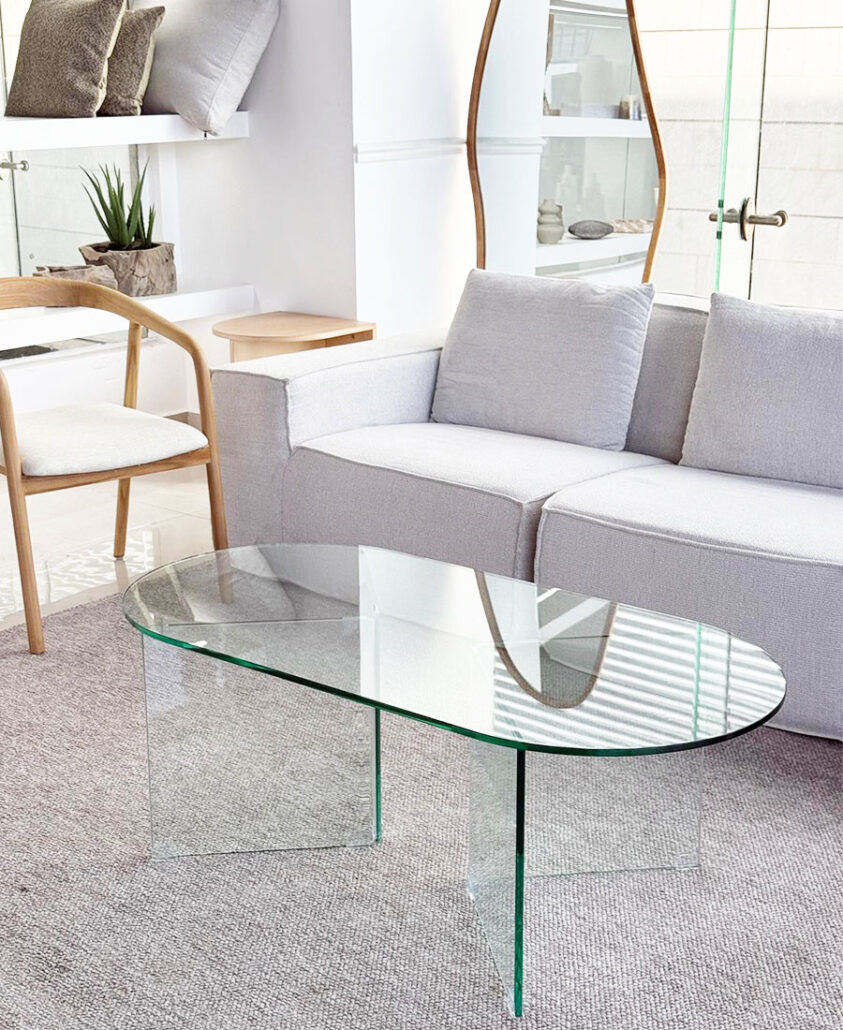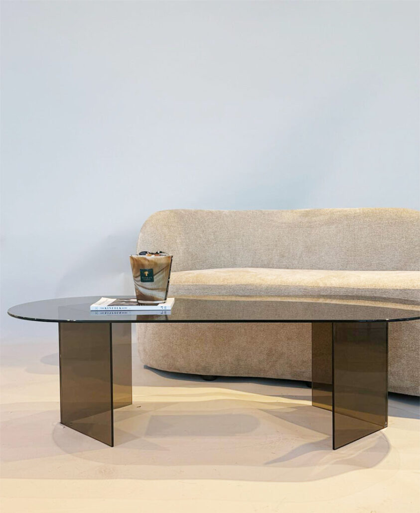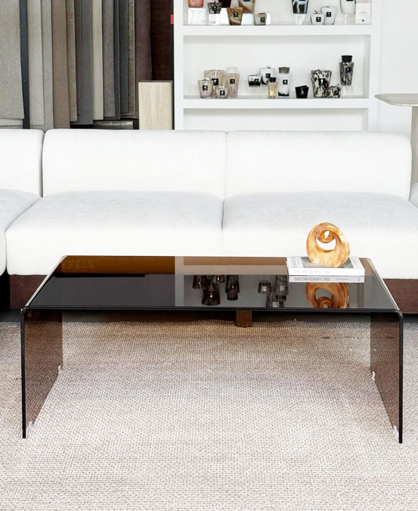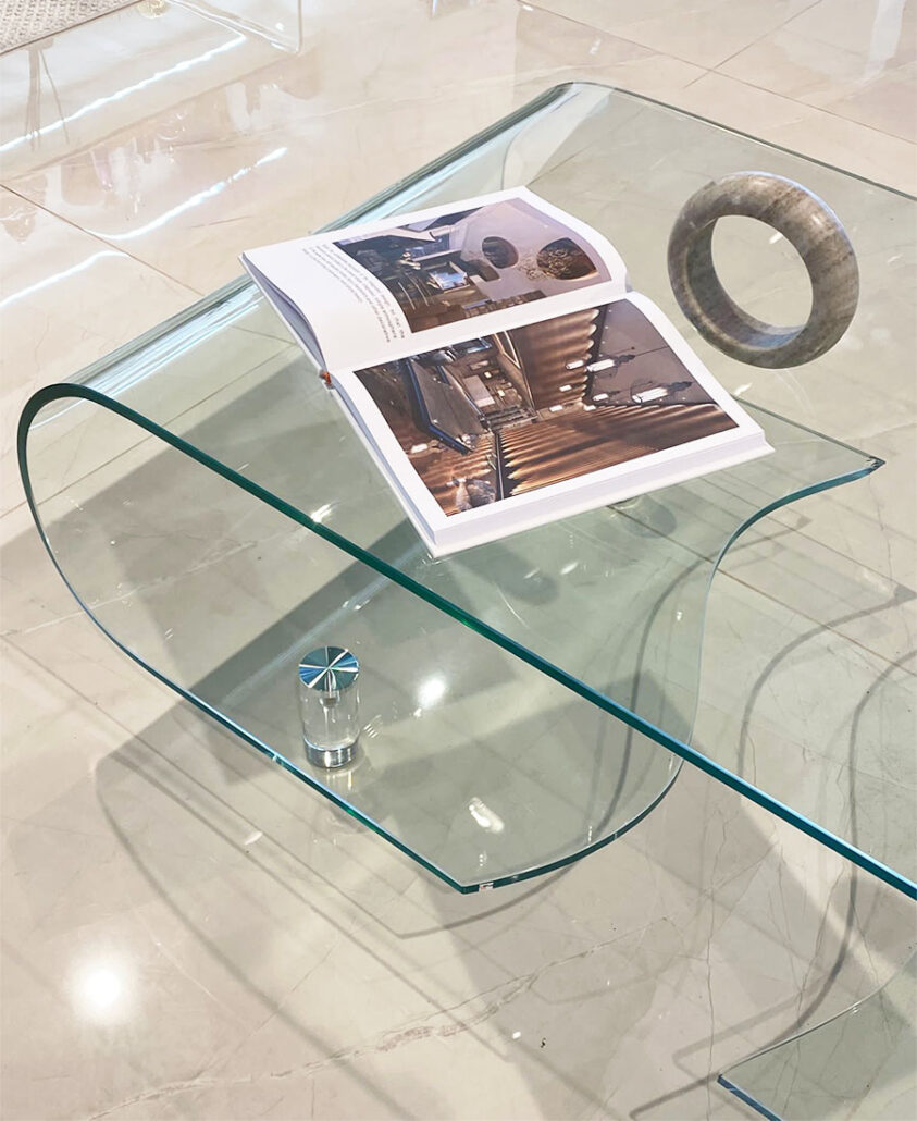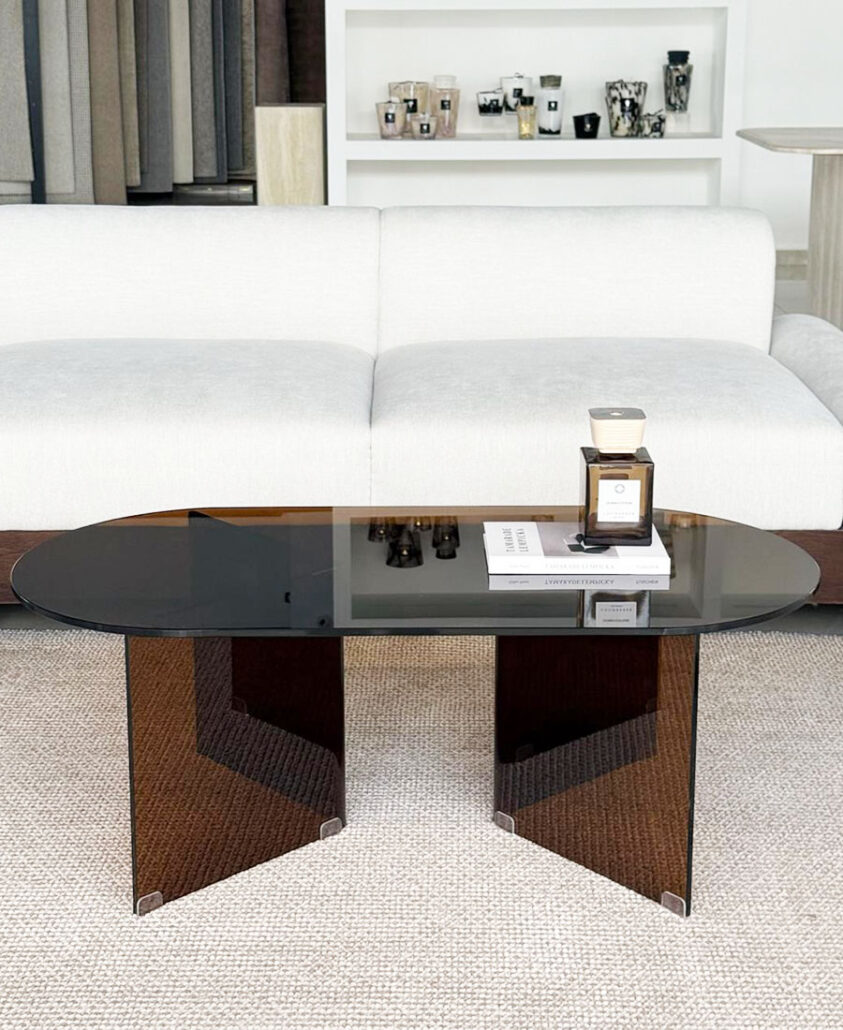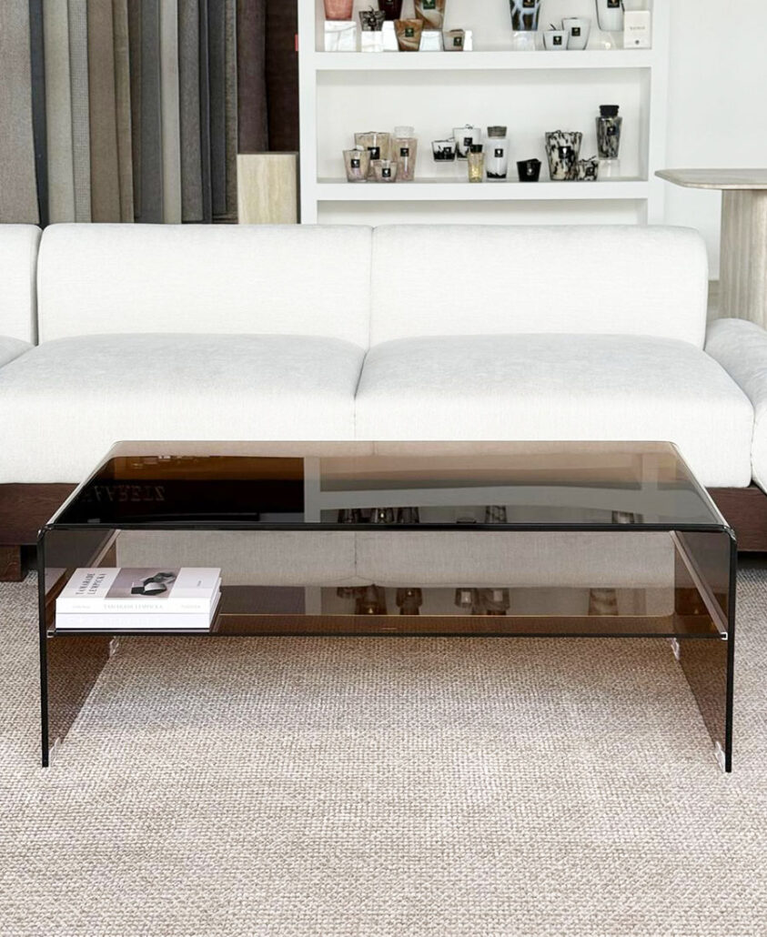 שולחן סלון זכוכית אמבר מלבני - 2 קומות